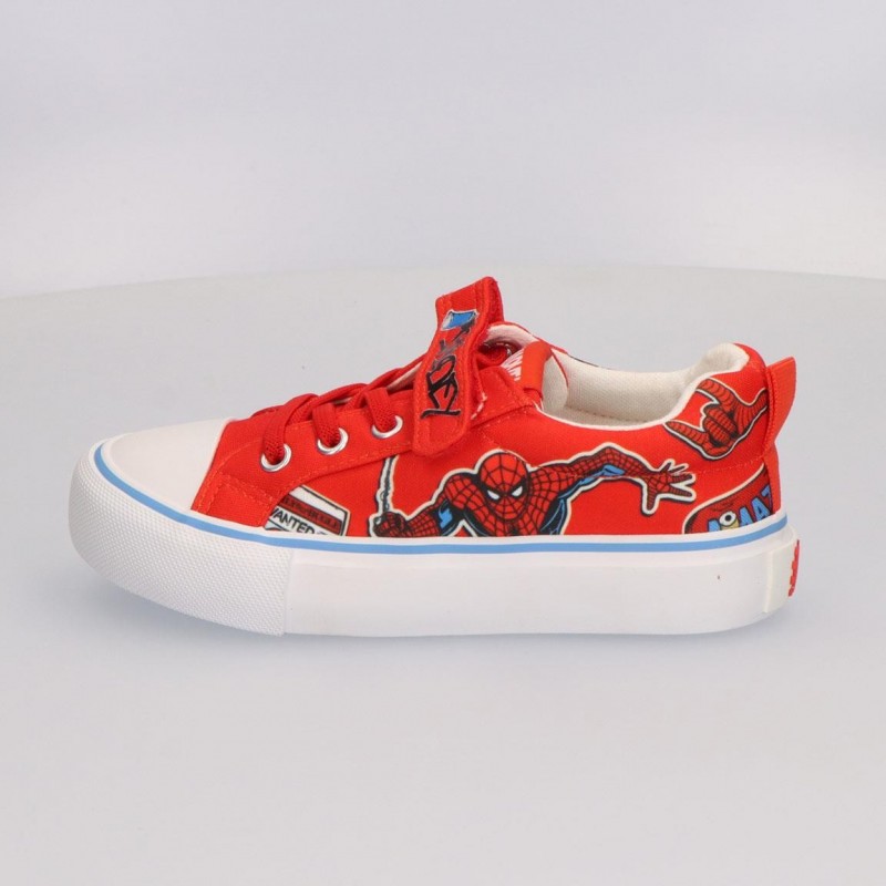 Estes ténis de lona com design do Homem-Aranha são perfeitos para os jovens fãs do super-herói. Apresentam uma vibrante cor vermelha com estampas do icónico personagem em azul e preto. Fabricados com uma mistura de poliéster e algodão, garantem conforto e respirabilidade. A sola de borracha vulcanizada proporciona excelente aderência e durabilidade, ideal para o uso diário e as aventuras das crianças.