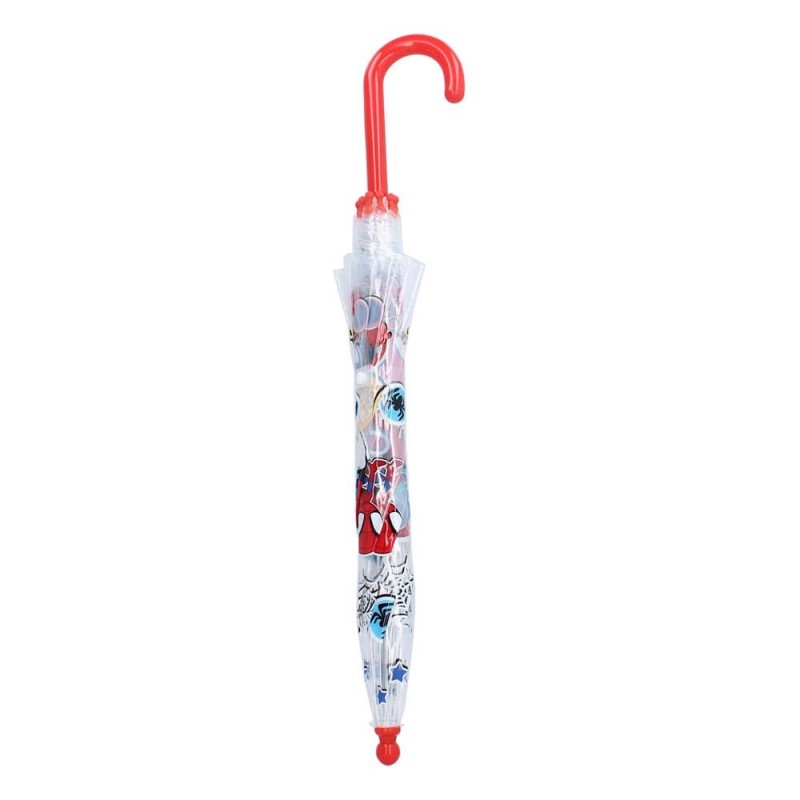 Proteja seus pequenos heróis da chuva com este guarda-chuva do Homem-Aranha de alta qualidade. Com um design vibrante e colorido, este guarda-chuva transparente apresenta o Spidey em ação, juntamente com teias e logos icônicos. Feito de poliéster e metal, garante resistência e durabilidade excepcionais. Seu diâmetro de 60 cm oferece ampla cobertura, e a alça curva vermelha facilita o manuseio pelas crianças. Oficialmente licenciado, este acessório é perfeito para alegrar os dias chuvosos e é um presente fantástico para os fãs do icônico lançador de teias.