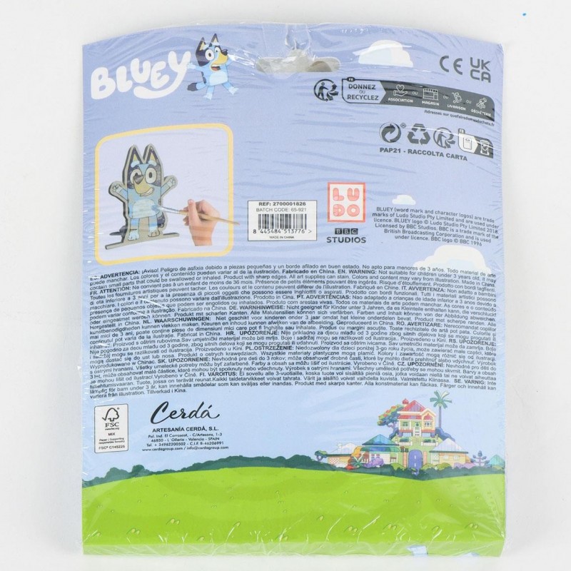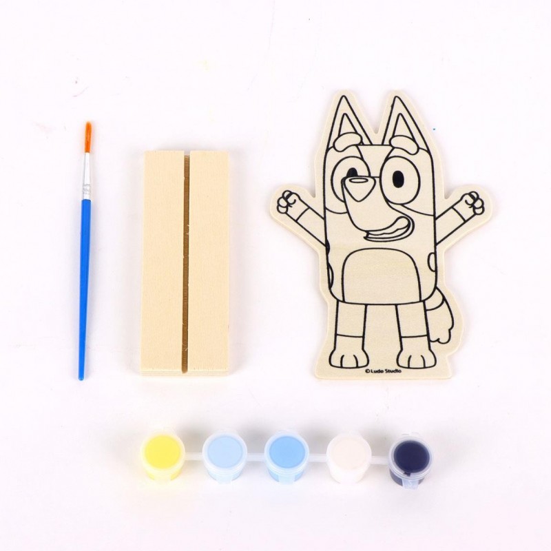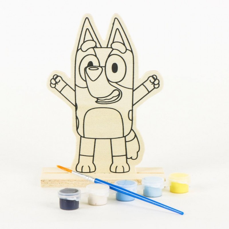 Descubra a diversão das manualidades com a figura de madeira para pintar Bluey. Este conjunto inclui uma figura de Bluey feita em madeira 100%, perfeita para que os pequenos desenvolvam sua criatividade. Com contornos claros, a figura é projetada para ser pintada com as tintas fornecidas no pacote. O conjunto vem com um pincel e quatro cores básicas: preto, azul, branco e amarelo, ideais para personalizar o Bluey.