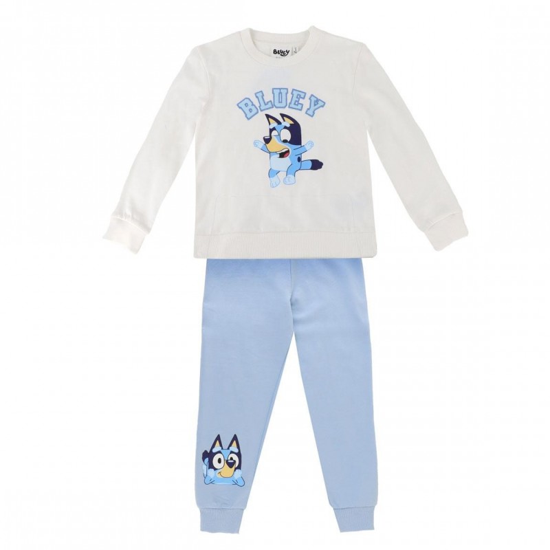 Este encantador fato de treino de algodão Bluey é a escolha perfeita para os pequenos fãs do famoso personagem. Composto por uma sweatshirt branca com Bluey na frente e umas calças azuis a condizer com detalhes do adorável cão na perna, é perfeito para crianças de 3 a 6 anos.