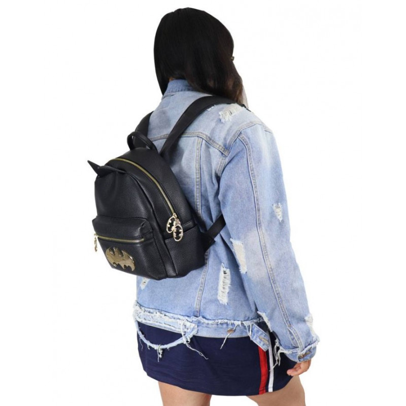 Se trata de un bolso de tamaño mediano que mide en torno a 30,5 x 25,5 x 10 cm y que puedes llevar cómodamente de mochila. Cuenta con una extraordinaria calidad tanto en materiales como en acabados, tiene licencia oficial de DC, y está realizado en piel sintética, sin la utilización de piezas o componentes de origen animal.