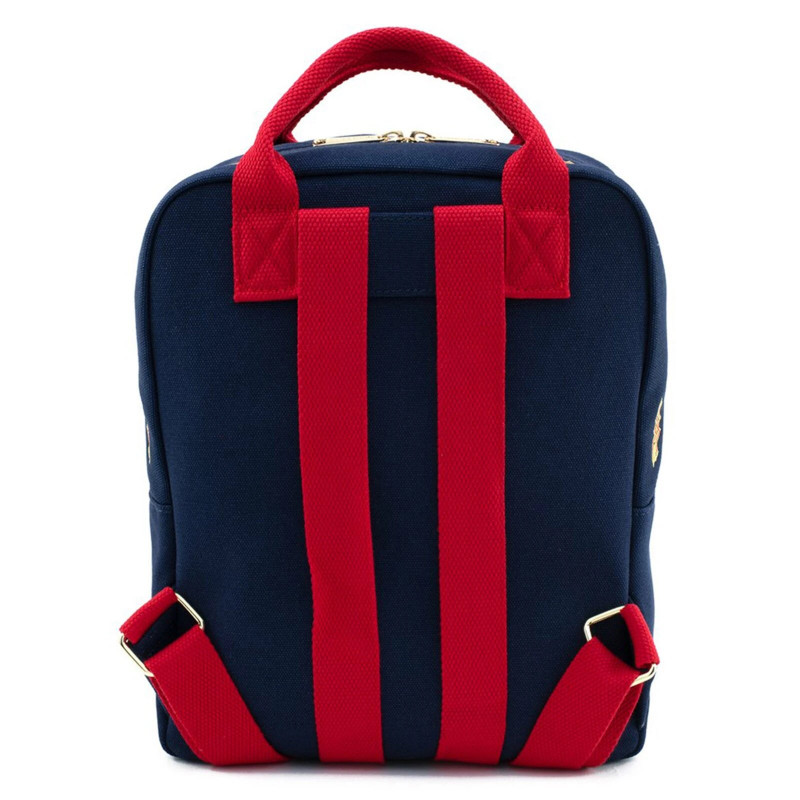 Y no digamos nada de su espectacular diseño, con un patrón de logos de Wonder Woman a color que destacan sobre el elegante azul marino de fondo. Además las asas y las correas de la mochila son de color rojo formando un conjunto realmente bonito.
