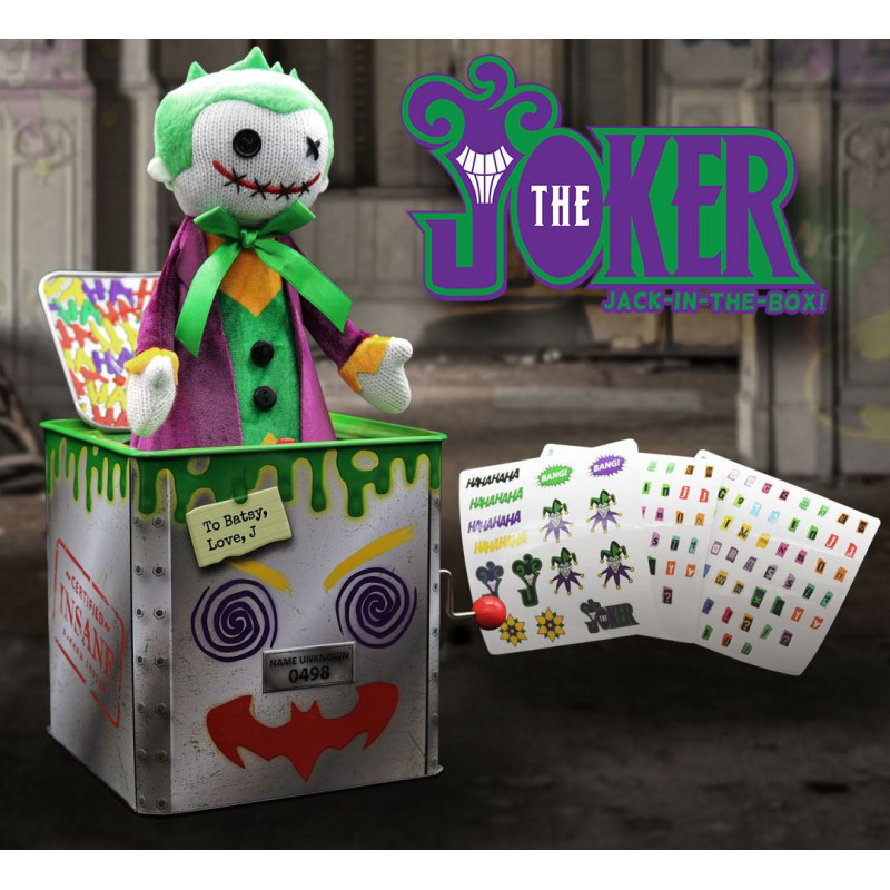 Esta maravillosa figura es en realidad un muñeco de Joker, y tiene a una calidad de detalles y acabados excepcional, incluidos los detalles más icónicos del personaje, como por ejemplo su vestimenta, o esa sonrisa inconfundible. Pero lo más original de este artículo es que Joker está dentro de una auténtica caja de música cuya sorpresa es él mismo. Una maravilla de 29 cm de alto (cuando está abierto), que incluye además un set de más de 70 pegatinas de Joker, Batman y Harley Quinn, para que decores la caja como quieras. Y también recortes de revista de letras para que crees tus propias cartas de Joker.