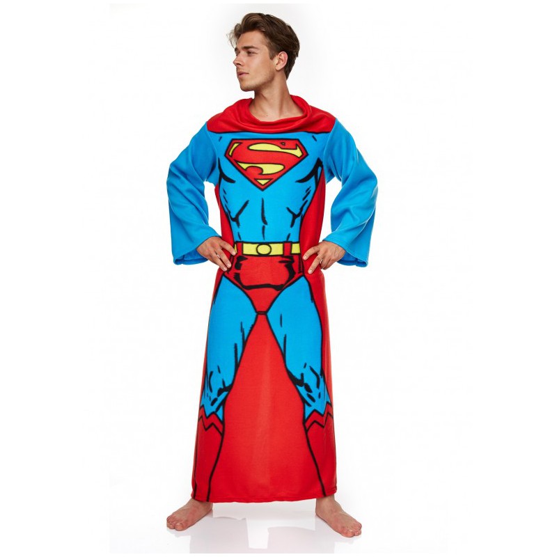 Pues si, esto es exactamente lo que has leído: una manta con mangas y capucha que se convierte en una auténtica y genuina batamanta!! Pero no en una cualquiera! Ésta es especial, realizada en el color clásico del uniforme de Superman con sus músculos bien marcados y todo.