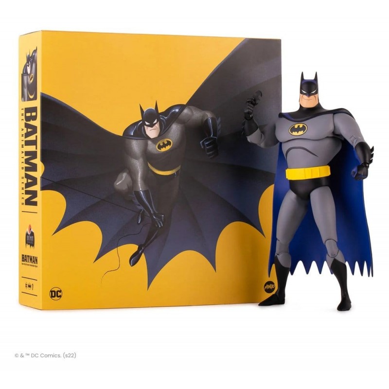 Descubra a impressionante figura do Batman inspirada em 'The Animated Series'. Esta figura em escala 1/6 mede aproximadamente 30 cm, mostrando o Batman com detalhes fiéis à clássica série animada. Fabricada pela Mondo, é um item de coleção licenciado oficialmente pela DC Comics.