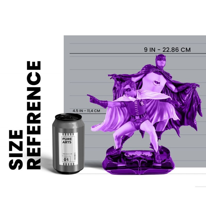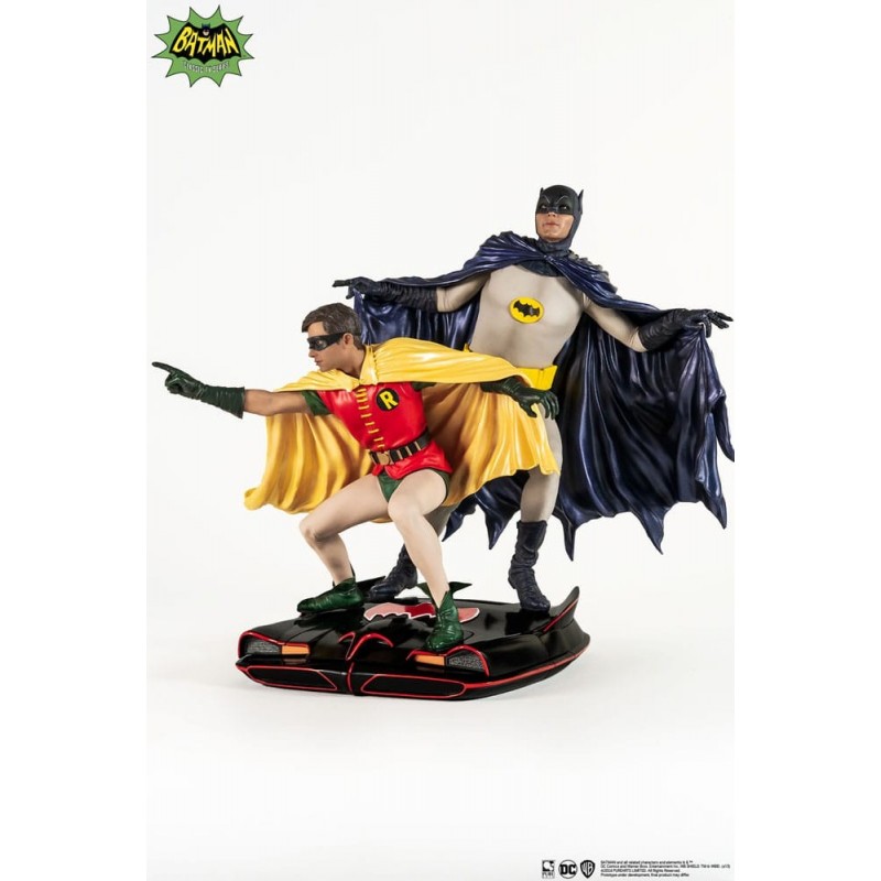 Apresentamos esta incrível estátua de Batman & Robin de 1966, um verdadeiro tributo aos clássicos da DC Comics. Esta figura detalhada representa Batman e Robin em uma pose dinâmica, com acabamentos meticulosos pintados à mão.