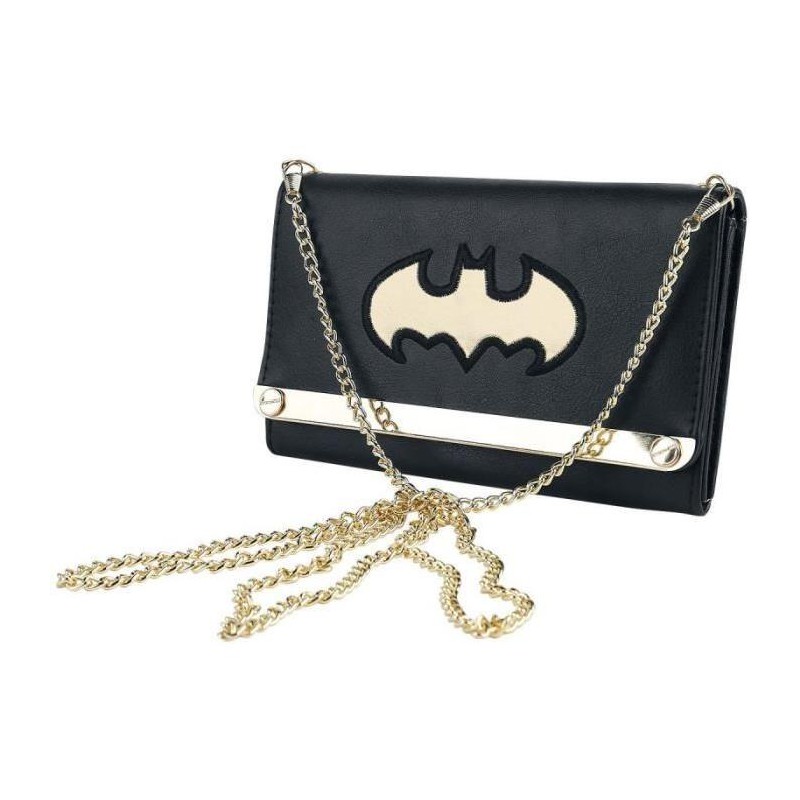 Mira esta cartera grande o bolso de mano pequeño (22 x 12 cm) de Batman que chulo es!!! Está realizado en una mezcla de poliester y cuero sintético con unos acabados magníficos y sin la utilización de piezas o componentes de origen animal.