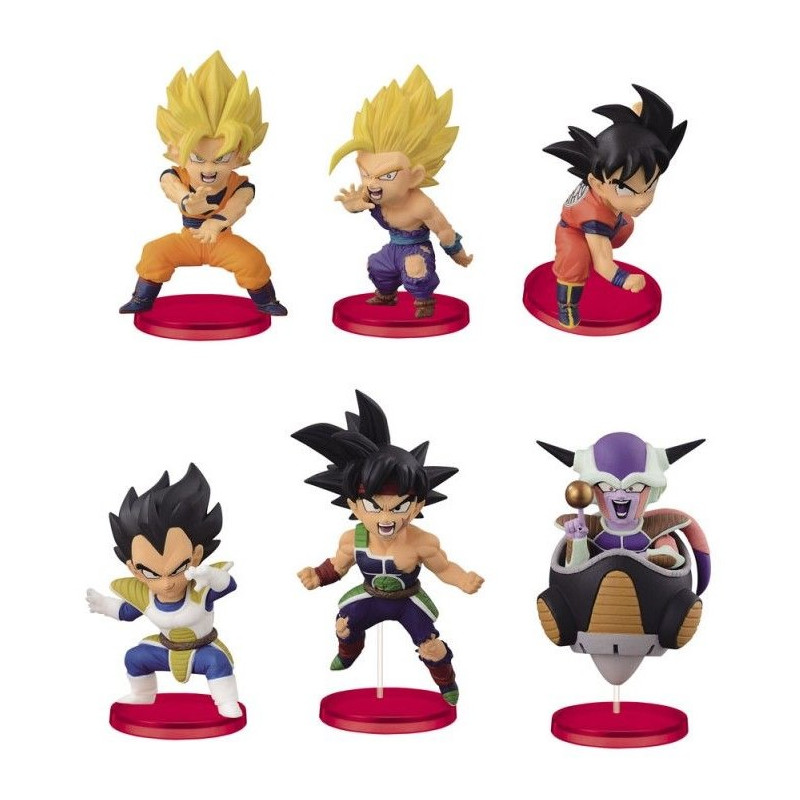 Se trata de unas figuritas sorpresa realmente exquisitas que captan perfectamente toda la esencia del personaje al que representan. Cada figura cuenta con su propia base expositora, forman parte de la serie WCF Chibi de la firma Banpresto. Arriésgate y pide la tuya porque puede tocarte cualquiera de las que ves en la imagen.