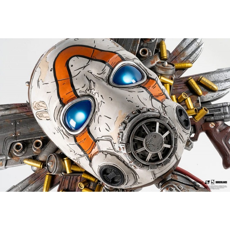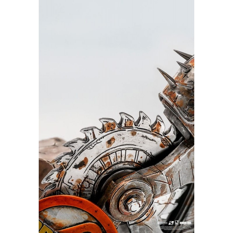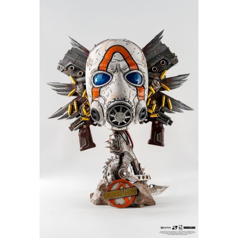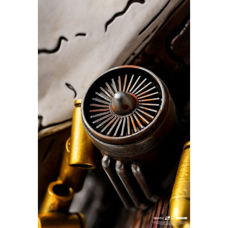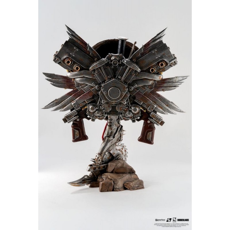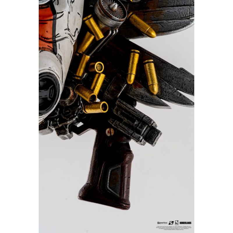 Com uma altura aproximada de 46 cm, esta peça é limitada a apenas 1250 unidades no mundo todo, tornando-se um item valioso para qualquer entusiasta de videogame. O suporte apresenta detalhes mecânicos que complementam o estilo único de Borderlands. Oficialmente licenciada pela Pure Arts, este produto é perfeito como presente original ou como toque especial em qualquer coleção. É o complemento perfeito para qualquer espaço que deseje capturar a essência do universo Borderlands.