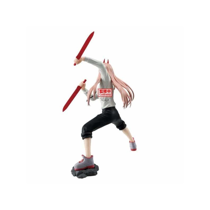 Power é apresentada em uma pose cheia de energia e expressividade, fiel ao estilo visual do anime. Cada detalhe, desde sua expressão facial até os detalhes das roupas, é cuidadosamente modelado e pintado para refletir seu caráter explosivo.