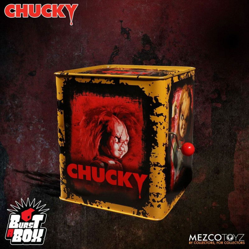 Aquí llega un artículo que es un pequeño lujo para los amantes del cine de terror. Y es que se trata nada menos que de una fantástica figura, y a la vez caja de música, creada por el prestigioso fabricante de figuras de colección Mezco Toyz, y basada en Chucky, este muñeco diabólico con el que más de uno seguro que ha tenido pesadillas.