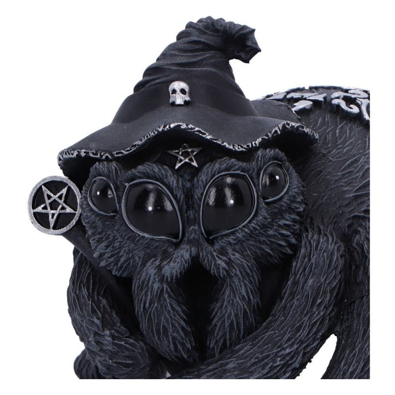 Descubra a encantadora Figura Arachnias de 8 cm da série Cult Cuties, uma peça única com um design místico. Feita de polirresina de alta qualidade, cada figura é pintada à mão, garantindo detalhes inigualáveis. Apresenta uma adorável aranha preta adornada com detalhes prateados, destacando seu chapéu de bruxa decorado com um crânio e pentagrama, acrescentando um toque mágico e misterioso.
