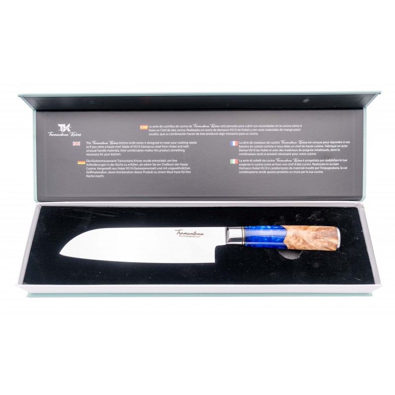 Esta faca Santoku não é apenas uma ferramenta, mas uma peça de arte culinária que enriquecerá a sua experiência culinária. Melhore a precisão e desfrute de cada corte com esta faca excecional da Tramuntana.