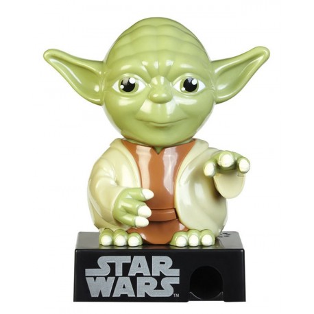Mira que cosa más divertida!! Es la versión moderna e intergaláctica de los antiguos expendedores de caramelos con formas de personajes. En este caso el guardián de los caramelos es nada menos que el mismísimo Yoda de la mítica saga de películas Star Wars.
