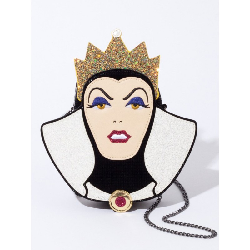 Dentro desta coleção, surge esta magnífica mala dupla Branca de Neve. O design é fantástico, com a madrasta a moldar o contorno da mala com a sua coroa e tudo. A bolsa mede 25x20x5 cm e vem com uma elegante corrente para a poder pendurar.
