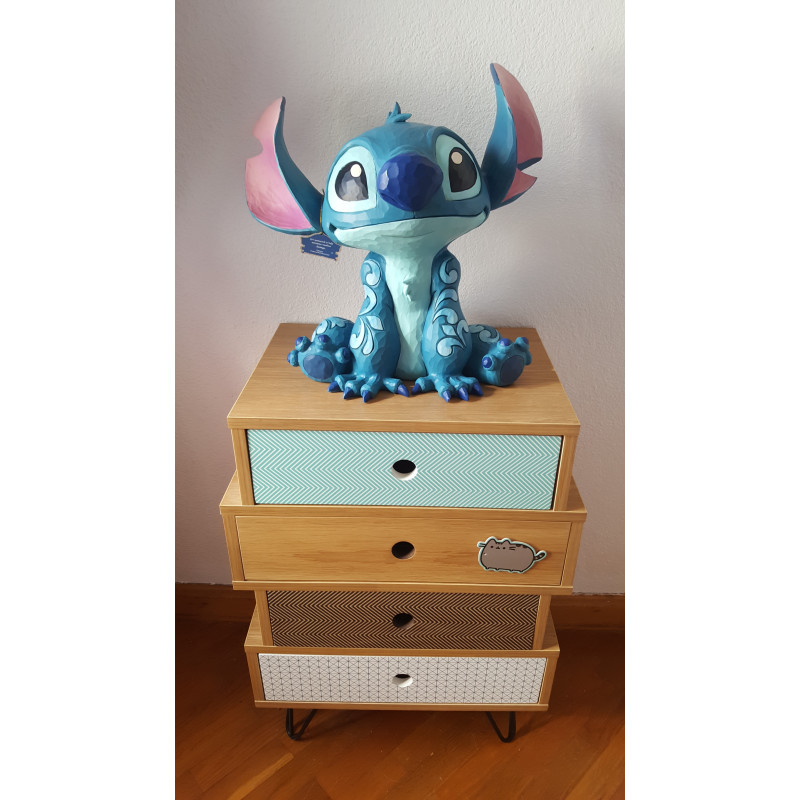 Nesta ocasião, temos uma das mais adoráveis personagens da Disney, Stitch, com todos os seus detalhes característicos meticulosamente reproduzidos, mais os acrescentados pelo próprio Jim Shore, que são muito fixes . Uma grande figura que irá sem dúvida encantar os fãs de Lillo e Stitch e Disney, e encherá de cor as vitrinas dos coleccionadores mais exigentes.