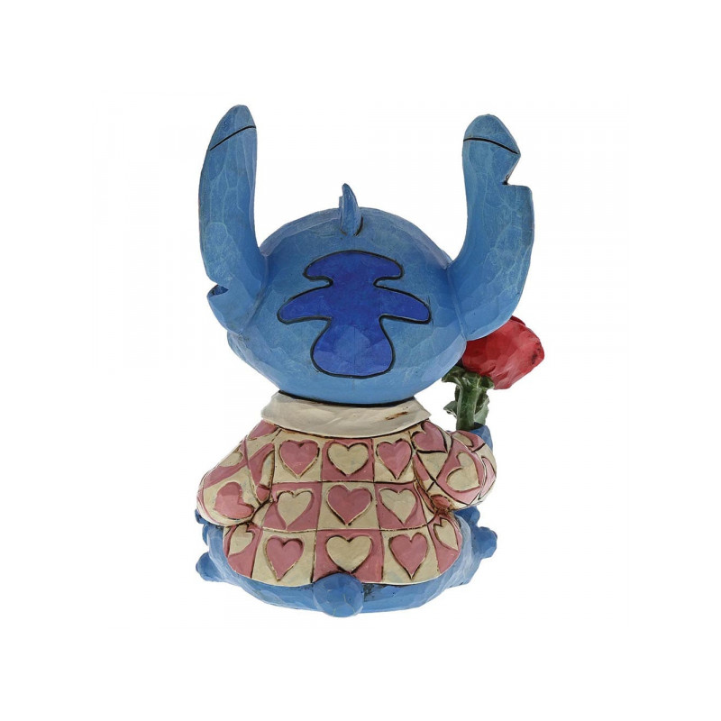 En esta ocasión, tenemos a un personaje divertido y adorable a partes iguales: el gran Stitch de Lilo y Stitch , con sus 15 cm y todos sus detallitos característicos reproducidos minuciosamente, además de los propios de Jim Shore. Es una edición especial San Valentín, así que aparece con una rosa en la mano, lo que lo hace todavía más amoroso de lo que ya es Stitch en sí.