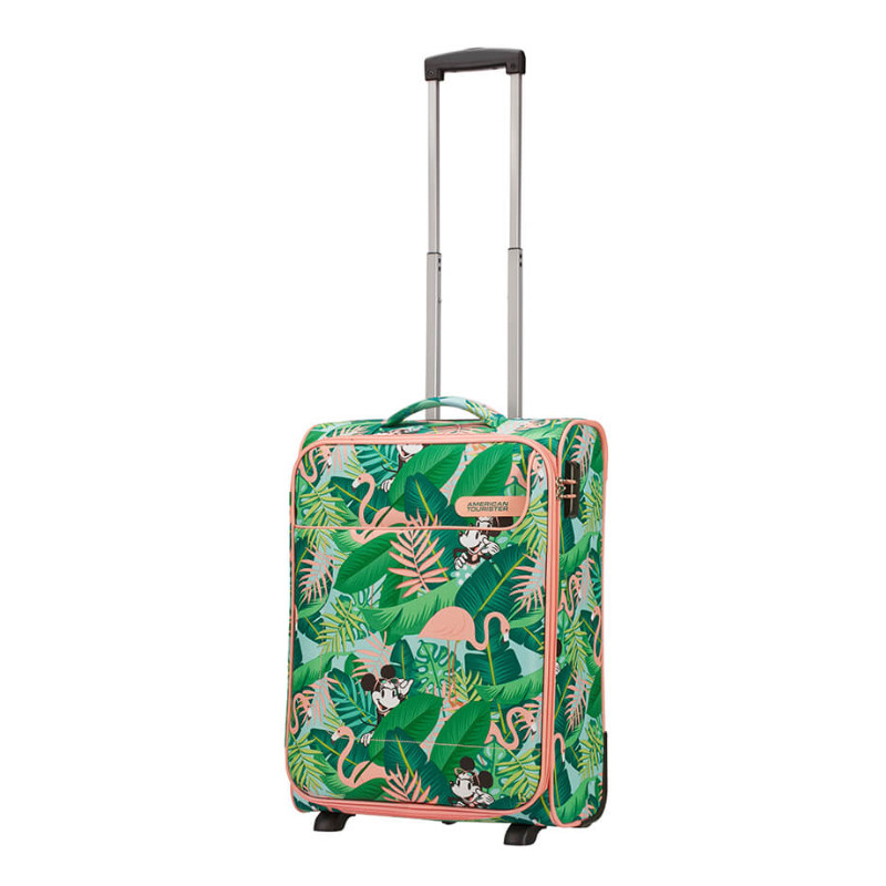 Mide aproximadamente 55 x 40 x 20 cm, para que puedas meter unas cuantas cosas pero a la vez llevarla contigo en al avión, ya que cumple con las medidas del equipaje de cabina. Es una maleta tipo trolley que cuenta con dos ruedas dobles y asa telescópica. Su exterior es de tela ultrarresistente, para que no se estropee nada dentro. Ha sido diseñada y fabricada por la prestigiosa firma American Tourister (grupo Samsonite).