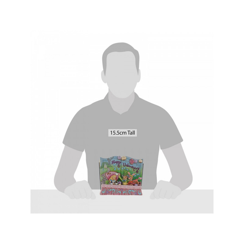 En esta ocasión, tenemos una figura de la línea Storybook, los famosos libros, que es un delicioso homenaje a todo un clásico de Disney como Alicia en el País de las Maravillas, y en la que vemos a la propia Alicia en la fiesta de té celebrando el no cumpleaños, con todos sus detallitos característicos reproducidos minuciosamente, además de los propios de Jim Shore. Tiene unas medidas aproximadas de 19 x 15 x 10 cm.