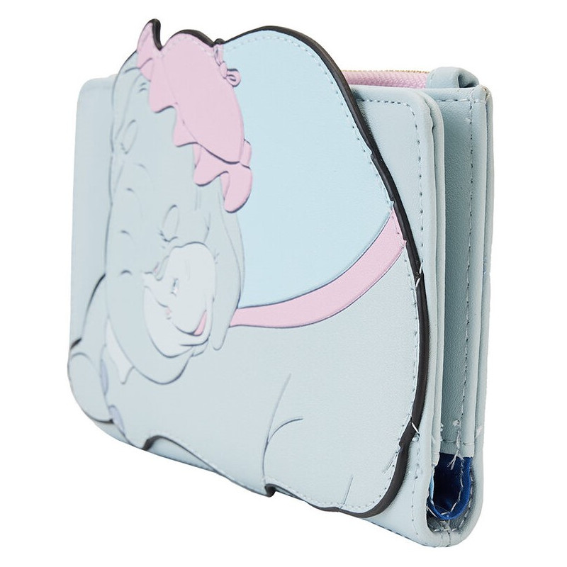 Mas, sem dúvida, o mais surpreendente é o seu design, com a mãe do Dumbo, a Sra. Jumbo e o Dumbo a dormir nos braços um do outro. Repare em cada um dos pequenos pormenores desta carteira, como a impressão no interior.