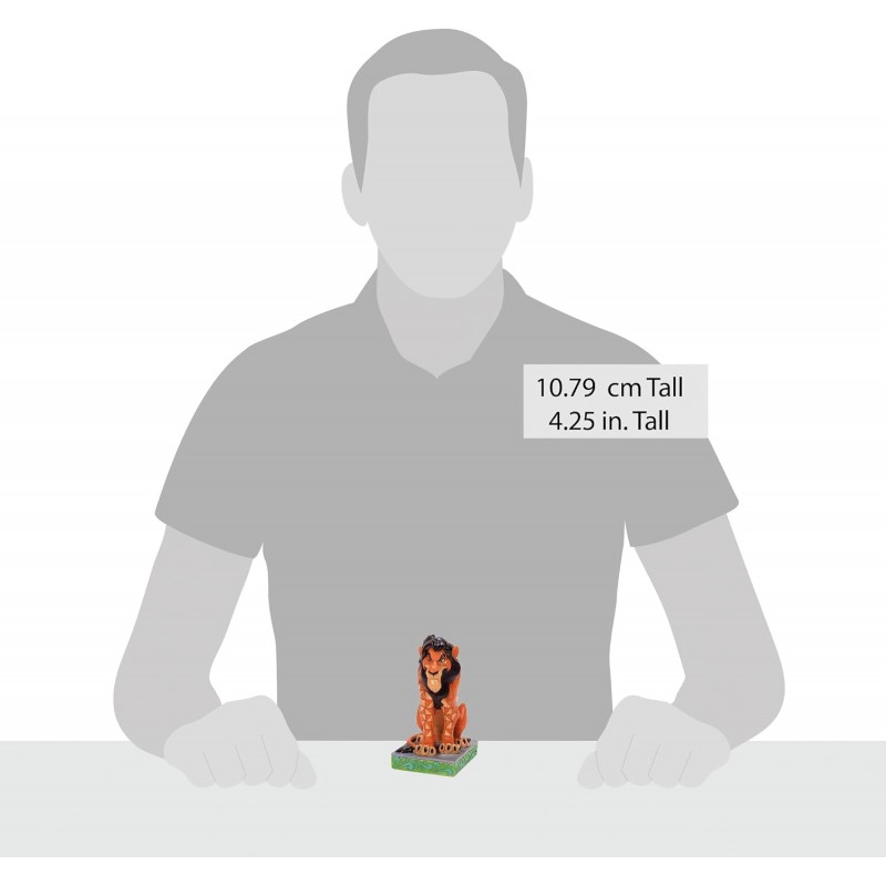 A figura Enesco de Scar de O Rei Leão é uma obra-prima criada pelo premiado artista Jim Shore para comemorar o 30º aniversário deste clássico da Disney. Esta escultura captura perfeitamente a essência do vilão com seus traços ferozes e sorriso malicioso refletido em seus olhos. A peça é adornada com os designs de mosaico distintivos de Jim Shore, acrescentando um toque artístico e único ao personagem.