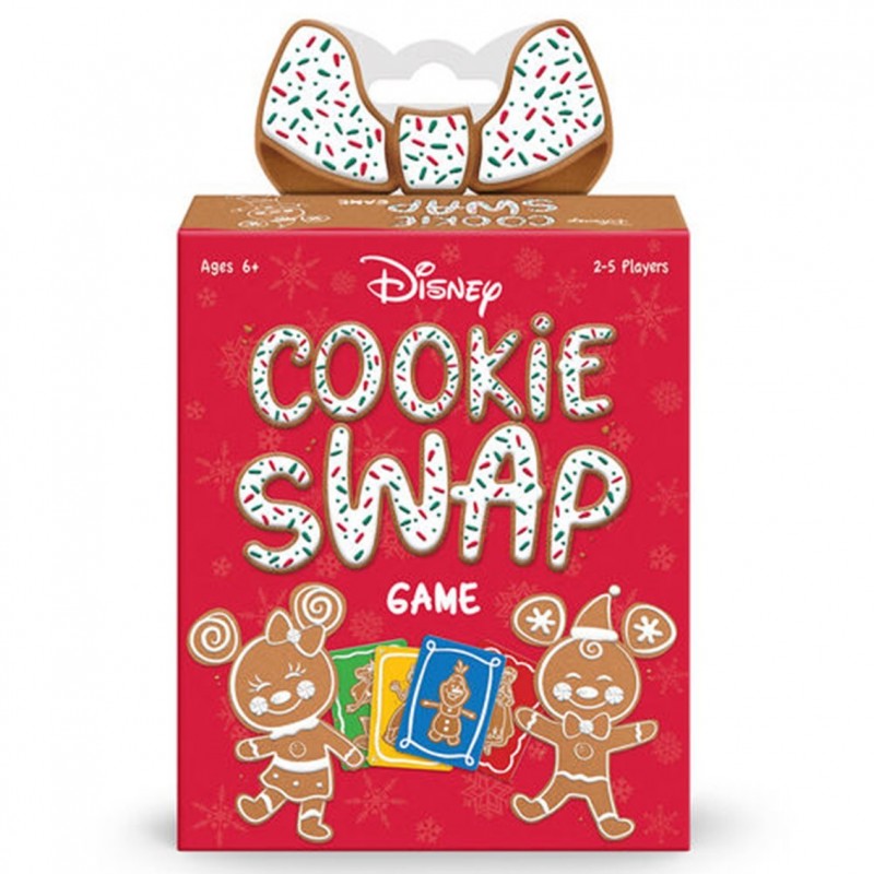 Descubra o mundo mágico de Cookie Swap, o jogo de tabuleiro perfeito para toda a família! Este encantador jogo de cartas, oficialmente licenciado pela Disney e Pixar, convida você a reunir seus personagens favoritos em uma divertida competição de troca de biscoitos. Com um design vibrante, o jogo vem em uma caixa vermelha decorada com motivos festivos e personagens de pão de gengibre em cores alegres.