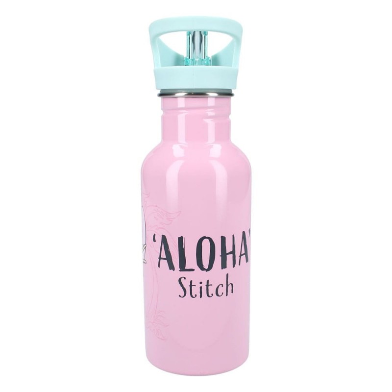 Descubra a garrafa de aço inoxidável Lilo & Stitch de 500 ml, um item indispensável para os fãs da Disney. Esta garrafa encantadora apresenta um design alegre com Stitch sobre um fundo rosa pastel. A tampa azul claro com bico retrátil facilita beber sem derramar, perfeita para crianças e adultos.