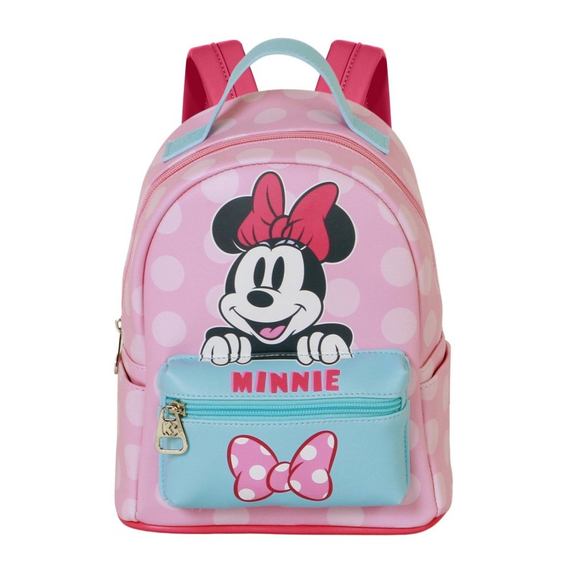 Descubra a encantadora mochila urbana da Minnie Mouse, ideal para os fãs da Disney. Esta mochila rosa apresenta um design adorável com bolinhas brancas e a imagem da Minnie Mouse com seu laço vermelho característico. Ela possui um compartimento principal e um bolso frontal com zíper, perfeitos para guardar seus pertences com segurança.