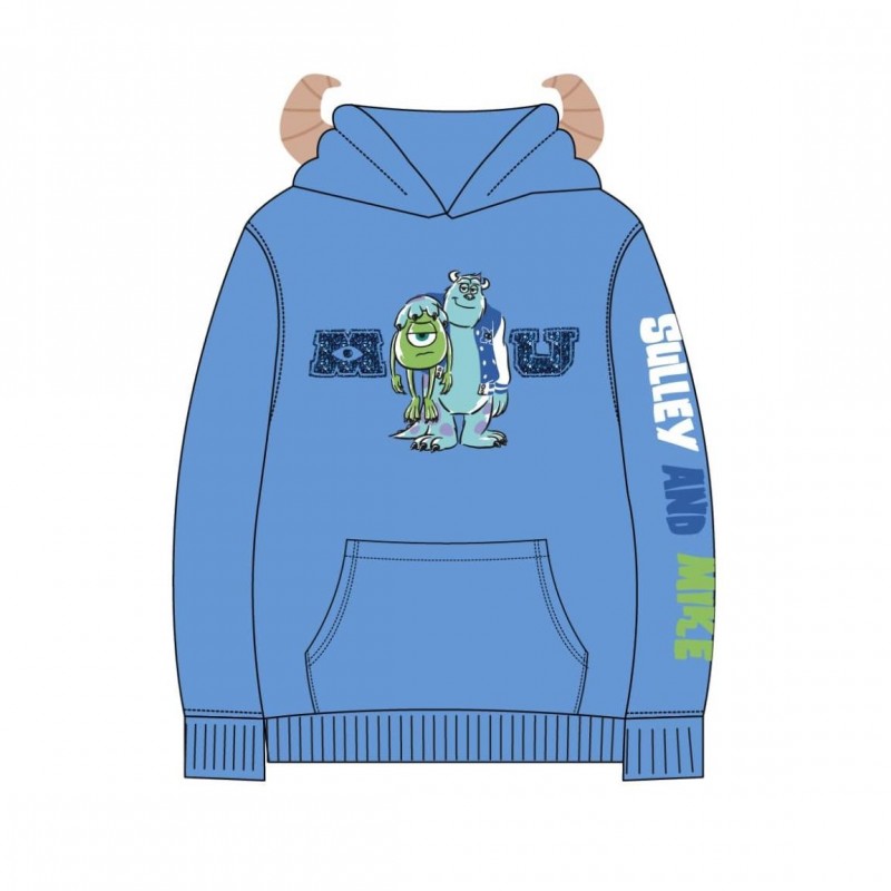 Ideal para crianças de 6 a 14 anos, o moletom inclui um capuz prático com detalhes únicos de chifres, reminiscentes de Sulley. Além disso, o bolso canguru frontal é perfeito para manter as mãos aquecidas. A manga exibe o texto 'Sulley and Mike' em um contraste marcante.