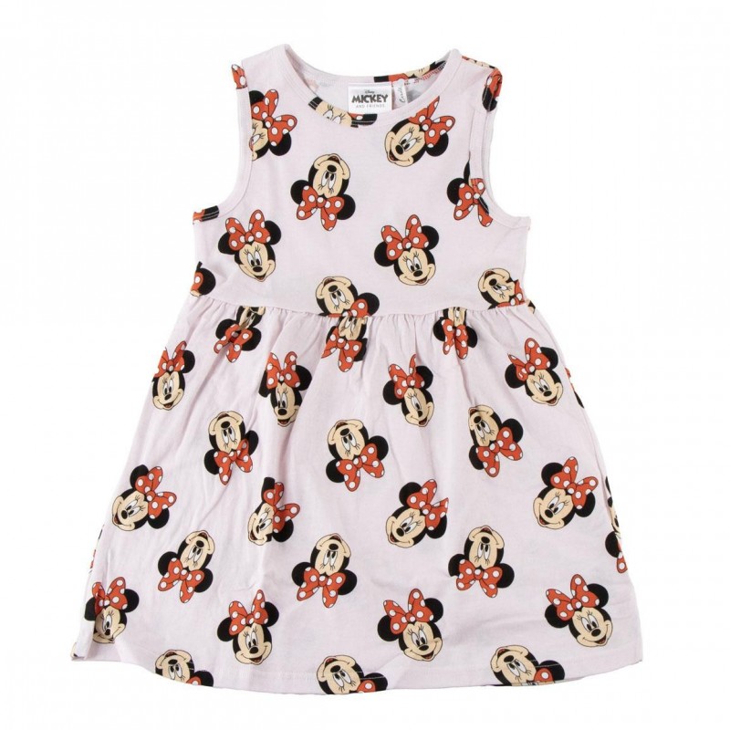 Descubra este encantador vestido da Minnie Mouse, perfeito para as pequenas. Feito de 100% algodão, garante conforto e suavidade para a pele sensível. O design apresenta um fundo claro adornado com inúmeras estampas da Minnie Mouse, caracterizadas por seu icônico laço vermelho com pontos brancos. Ideal para idades entre 3 e 6 anos, este vestido é uma escolha versátil para ocasiões especiais e uso diário.