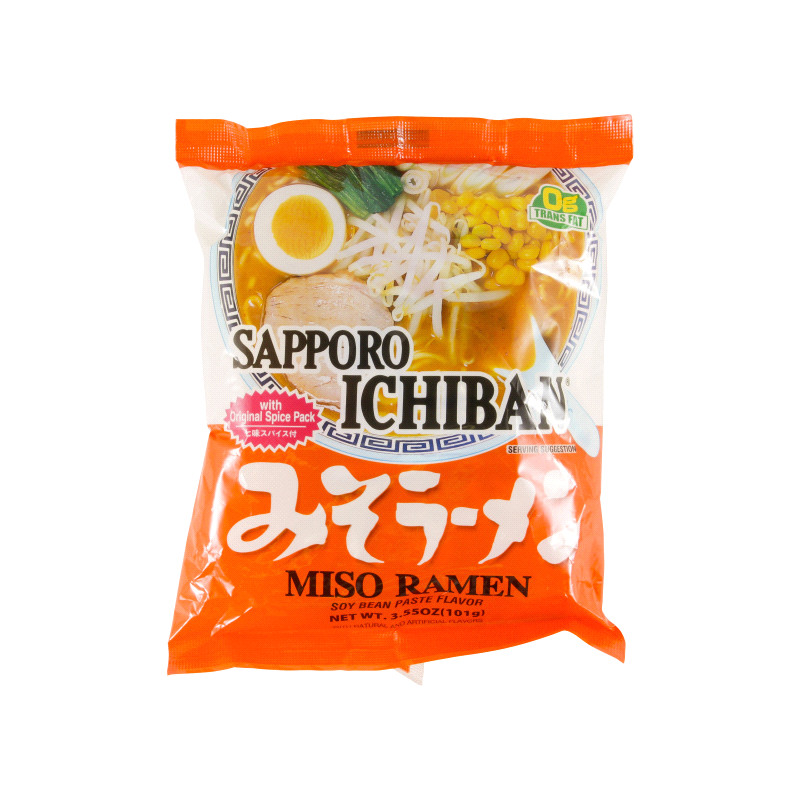 Sapporo Ichiban faz alguns dos nossos ramen instantâneos favoritos. Ichiban significa literalmente 'Número 1' em japonês para que você possa ter a garantia de um grande gosto por todos os macarrão ramen nesta gama. Este ramen miso-flavoured é uma escolha popular para sopa de ramen no Japão com um rico sabor a miso salgado.rn