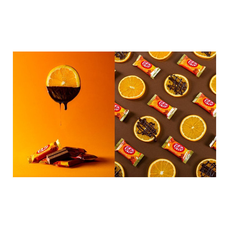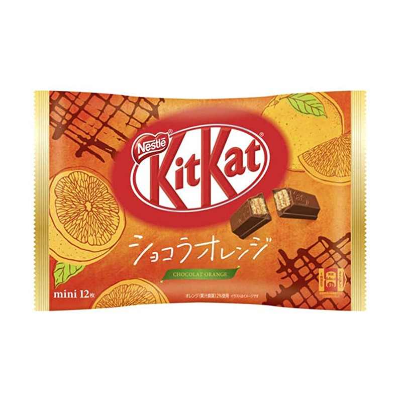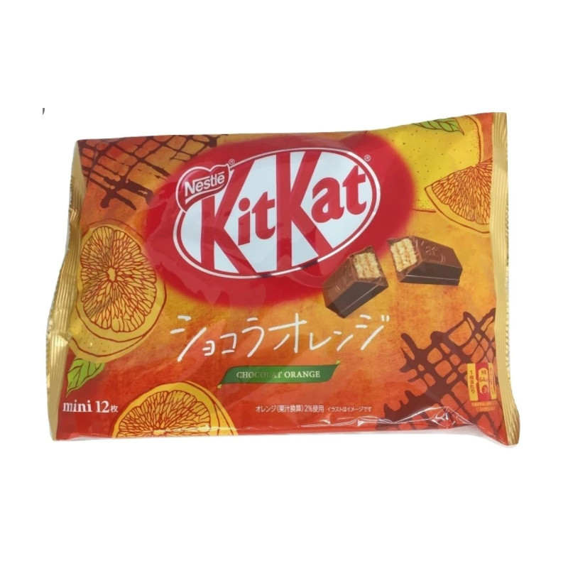 Desta vez temos um snack conhecido por todos, o famoso Kit-Kat, que no Japão tem muitas variedades diferentes, como acontece com outros produtos, e os japoneses são verdadeiros gourmets de snacks . Neste caso, trazemos-lhe uma estimulante mistura de laranja e chocolate que o vai conquistar. Apresentam-se também num formato muito giro, em pequenos pacotes dentro de um saco com um total de 12, perfeitos para partilhar ou para os comer aos poucos...