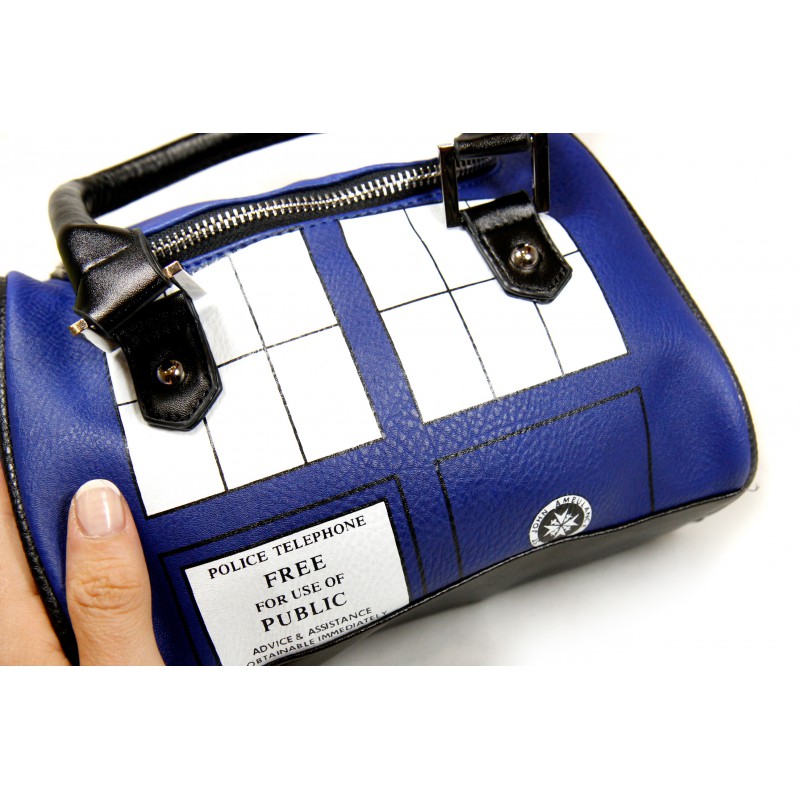 Con este bolso coqueto y resultón vas a llamar la atención allá donde vayas por la elegancia que despide. Lleva la imagen de la TARDIS del doctor como si hubiera tomado forma de bolso.