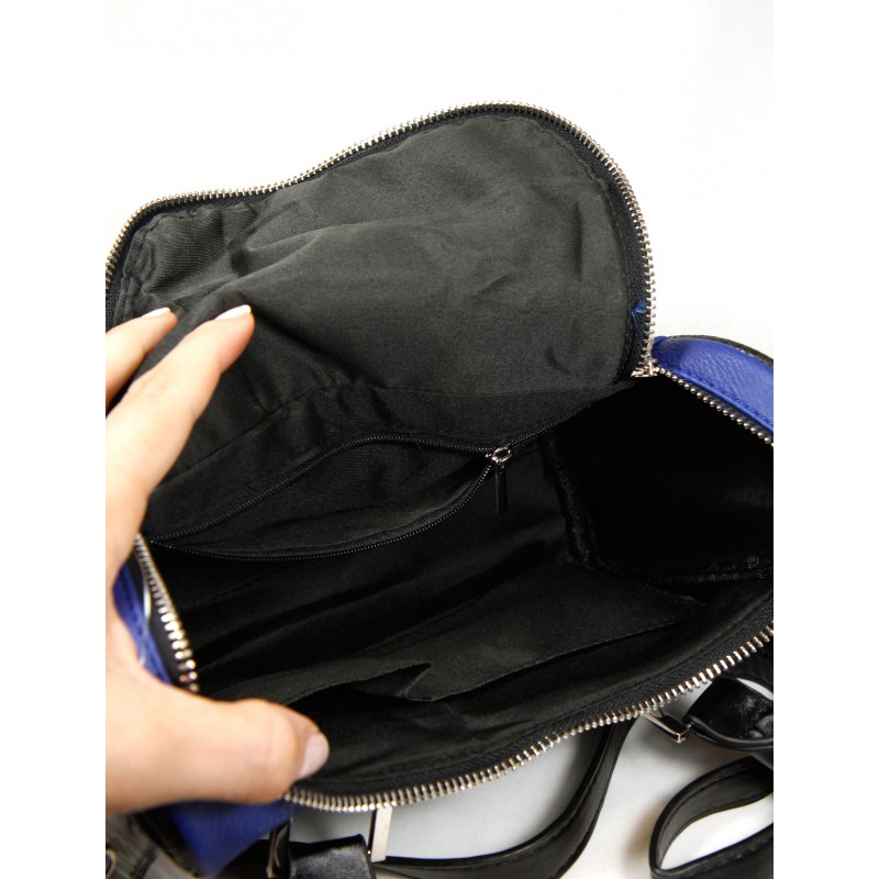 En el interior tiene un pequeño bolsillo con cremallera y otros dos abiertos.
