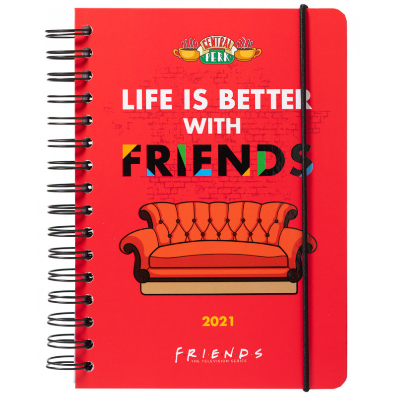Una agenda con licencia oficial, y una extraordinaria calidad tanto en materiales como en acabados. Además, es una agenda muy bien pensada, que dura de Enero a Diciembre de 2021 y tiene un total de 184 páginas a semana vista. Aunque si por algo destaca es por su genial diseño, con el dibujo del sofá del Central Perk en la portada y unos dibujos muy cuquis de los carismáticos protagonistas de esta serie. Y fíjate en el detalle de la goma para que no se abra, que le da un toque muy elegante.