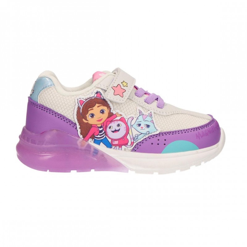 Estes tênis Gabby's Dollhouse coloridos são perfeitos para os pequenos. Feitos com PU e poliéster, estes sapatos combinam um design atraente com materiais duráveis e confortáveis. A sola TPR com luzes não só adiciona diversão como também segurança para brincadeiras ao ar livre à noite. Apresentando um design com personagens de Gabby's Dollhouse em tons de roxo com detalhes em rosa e azul, eles capturarão a imaginação de qualquer fã da série.