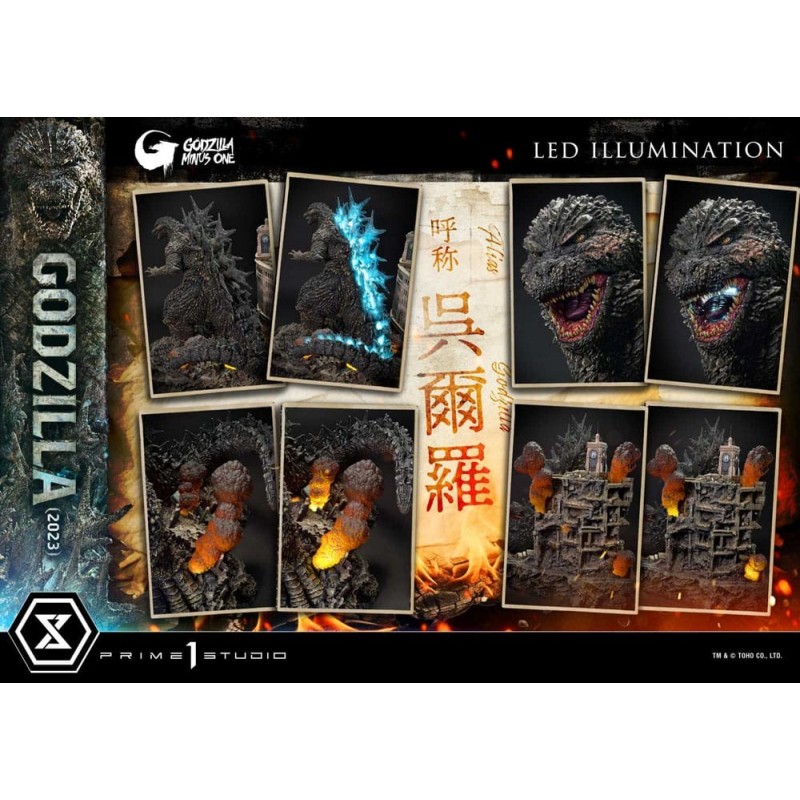 O diorama apresenta uma base ambiental com tema de destruição e está equipado com iluminação LED na boca e na barbatana dorsal de Godzilla, assim como nos fogos, fumaça e edifícios ao redor. Esta edição limitada inclui um expositor de placa de título como parte bonificada, tornando-o ainda mais exclusivo.