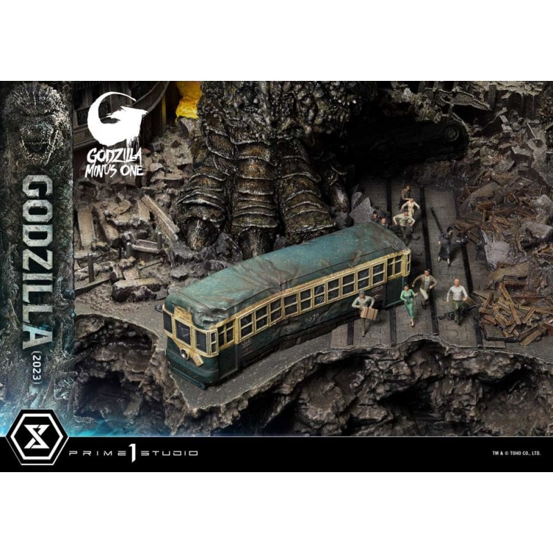 Immerge-se no universo de Godzilla com este deslumbrante diorama Masterline Series inspirado no filme "Godzilla vs. Kong". Este item de coleção mede aproximadamente 70 cm de altura, 76 cm de largura e 84 cm de profundidade. Feito de polirresina e pintado à mão, captura cada detalhe do monstro colossal em meio aos escombros urbanos.