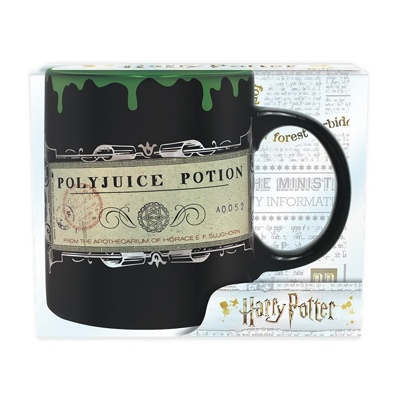 Esta é uma caneca oficial desta emocionante e mágica saga de livros e filmes que é Harry Potter e tem um grande design baseado numa das poções mais emblemáticas do mundo mágico, a Poção Multijuice, que permite a quem a bebe transformar a sua aparência na de outra pessoa, e que é usada por Ron, Hermione e Harry . Olhe também para o interior do copo, em verde e com uma mensagem no fundo: Poção Extremamente Perigosa . Não é recomendado para uso na máquina de lavar louça ou microondas.