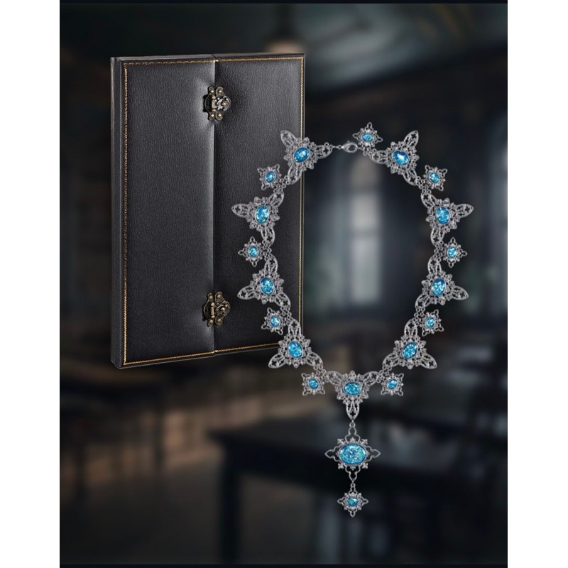 Descubra a réplica oficial do Colar de Opala Amaldiçoado de Harry Potter, uma peça essencial para qualquer fã da saga. Este colar, elaborado com atenção exímia aos detalhes, apresenta lindas opalas azuis incrustadas em finos elementos metálicos que recriam precisamente o design visto nos filmes. Cada oval de opala brilha intensamente, evocando a magia e o mistério que o rodeiam. Feito com materiais de alta qualidade, este colar é não apenas um tributo fiel ao universo mágico de J.K. Rowling, mas também uma impressionante e elegante joia para qualquer ocasião. Vem apresentado em uma elegante caixa preta, ideal para presente ou colecionismo.