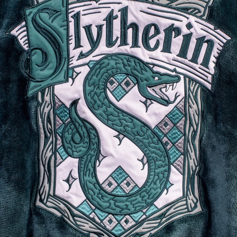 Este moletom com capuz Slytherin é indispensável para qualquer fã de Harry Potter. Feito de fleece macio, oferece conforto excepcional e calor aconchegante. Licenciado oficialmente, apresenta o emblema icônico de Slytherin em um verde profundo, destacando a cobra característica da casa.