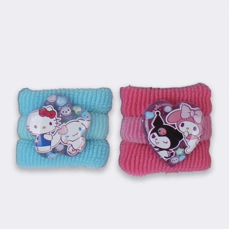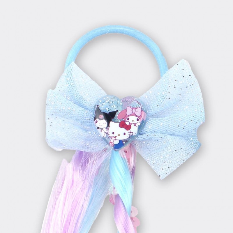 O conjunto contém óculos de sol coloridos e divertidos, ideais para proteger os olhos do sol enquanto se parece fabulosa. Também inclui um elástico para cabelo adornado com um laço azul brilhante e uma imagem da Hello Kitty em forma de coração, além de dois pares de elásticos para cabelo em rosa e azul com detalhes encantadores dos personagens. Complete o visual com dois clipes em forma de estrela cheios de glitter que adicionam um toque mágico ao penteado.