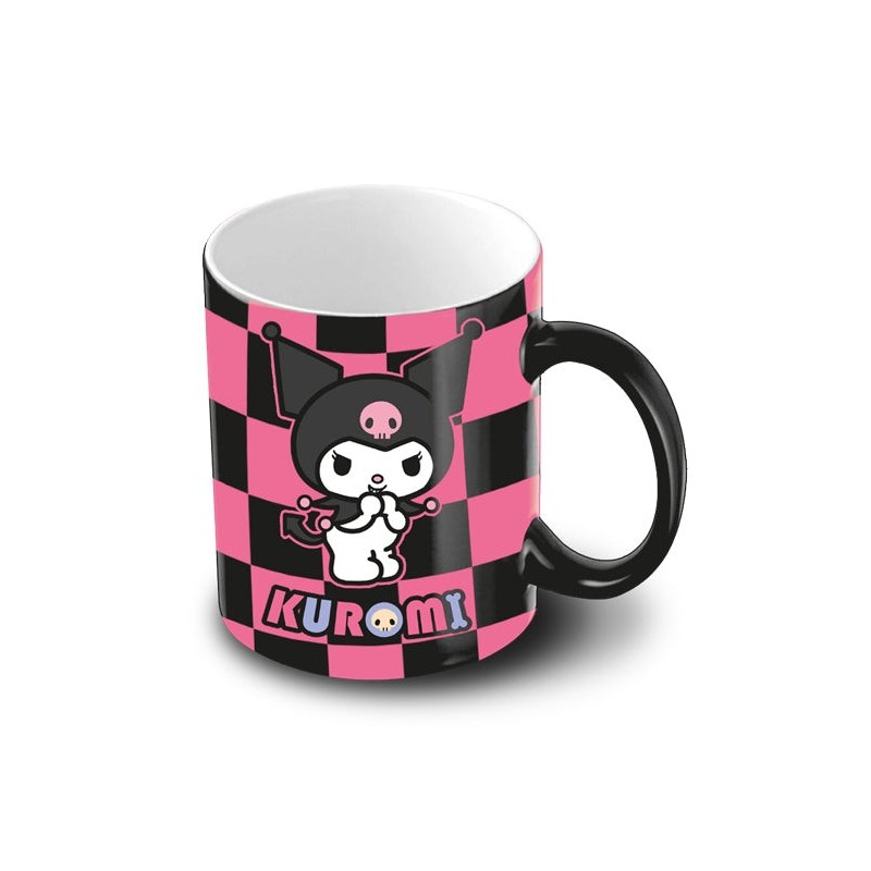 Aproveite suas bebidas quentes com estilo com esta caneca de cerâmica Hello Kitty Kuromi Chess. Com um design vibrante de quadrados pretos e rosas, e Kuromi como peça central, esta caneca é um tributo perfeito para os fãs de Hello Kitty. Feita de cerâmica de alta qualidade, esta caneca é tanto visualmente atraente quanto durável e segura para micro-ondas.