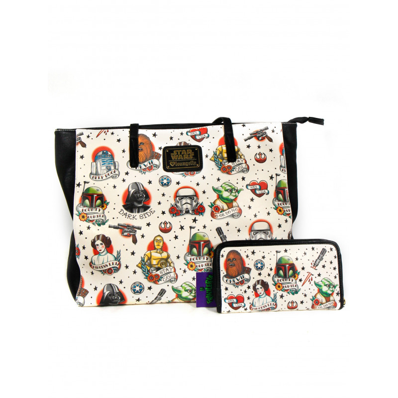 Da firma original Loungefly vem esta linda bolsa e carteira Star Wars da linha TATTOO