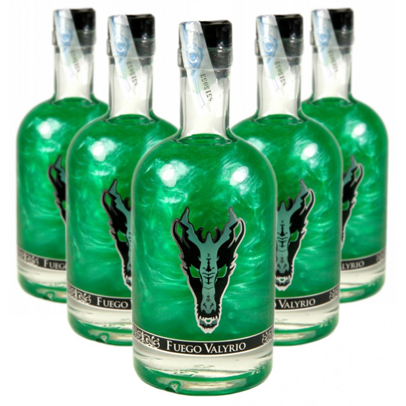 Fuego Valyrio é um licor delicioso baseado na ficção Jogo de Tronos e composto por fogo de dragão engarrafado e canela picante que, quando sacudido levemente, você pode apreciar uma nuvem de cores metálicas lembrando a autêntica poção feita pelos alquimistas da série quando tentam simular o Fogo dos dragões e com a qual conseguem destruir navios e cidades inteiras.