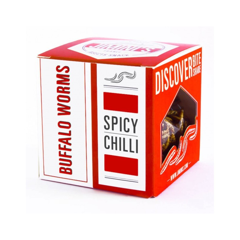 Y qué mejor que incluir entre tus aperitivos estos gusanos búfalo, cuyo sabor recuerda al de las pipas, criados con mimo en las granjas francesas, horneados lentamente y especiados con sabor a chili picante. Una auténtica maravilla que de la que no puedes privar a tu paladar. ¡Y encima sanos! Es rico en proteínas (55%), fuente de hierro y fibra, también contiene todos los aminoácidos esenciales no producidos naturalmente por el cuerpo humano.