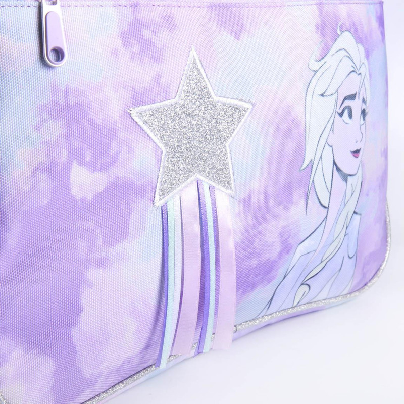 A mochila Carterona Frozen II Elsa School Backpack em roxo aquarelado é um produto exclusivo para os fãs do filme de animação de sucesso Frozen II. Fabricada em 100% poliéster, esta mochila apresenta um design encantador que capta a essência de Elsa, uma das personagens principais do filme, com a inscrição Be Magic e uma estrela brilhante.