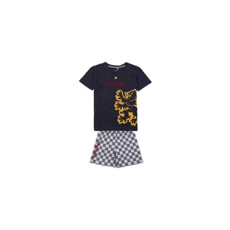 Pijama de duas peças com licença oficial de Harry Potter. Pijama de Verão para crianças, com uma t-shirt de manga curta e calções feitos de 100% algodão com fibras de 160 gramas, o que torna este pijama suficientemente macio e leve para dormir nas noites mais quentes do ano.