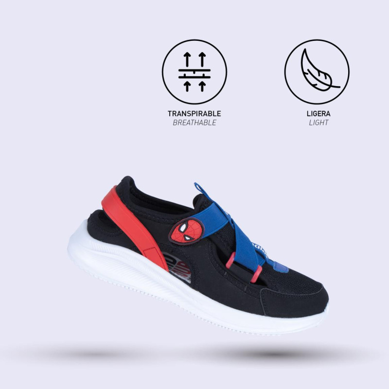 As sapatilhas Spiderman têm uma sola EVA técnica e leve para conforto e flexibilidade durante todo o dia. Esta sola é feita de materiais duráveis como Pu, Poliéster e Eva, o que garante uma longa vida útil do produto. Além disso, a sua construção em poliéster assegura uma ventilação adequada do pé, evitando a acumulação de humidade e mantendo assim um ambiente fresco e seco.