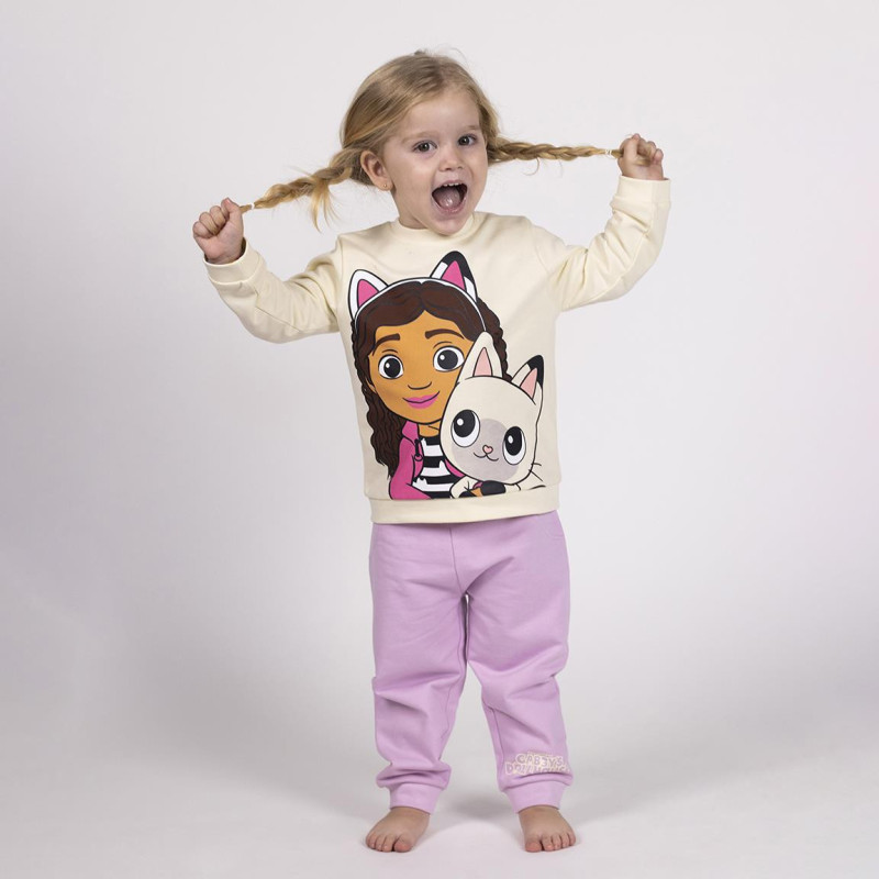 Com tamanhos disponíveis de 18 meses a 48 meses, este fato de treino é perfeitamente adequado para crianças em crescimento, dando-lhes a liberdade de movimentos de que necessitam para brincar e explorar. É também oficialmente licenciado pela Gabby's Dollhouse, o que o torna um presente original e emocionante para os pequenos fãs deste popular programa infantil.